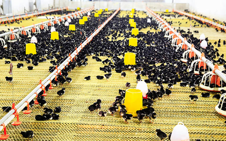 雛雞和育成雞對飼養設備、房舍、環境控制要求都非常高,特別是防疫消毒方面更為重要。進場車輛要經過嚴格消毒,人員須更衣換鞋戴帽,腳踩消毒水方可進場。