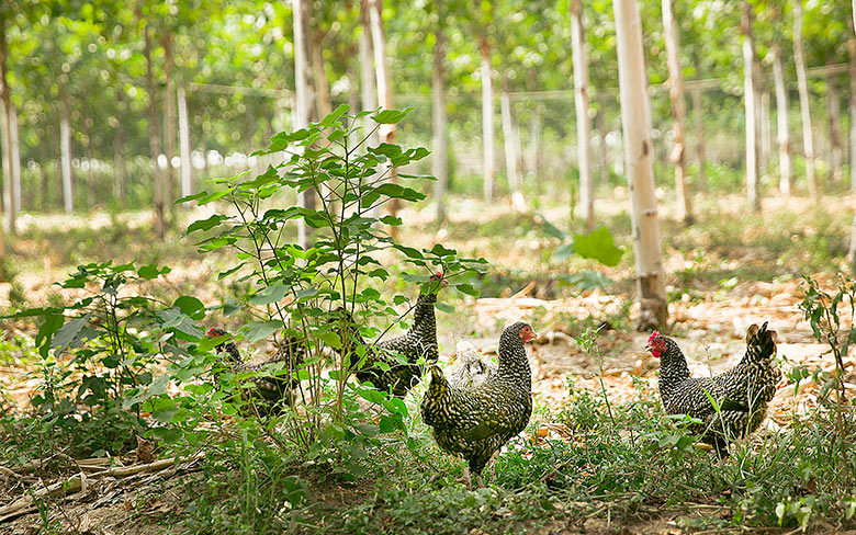 2013年公司投入二千多萬元,對原有養雞設備、場地進行了升級改造。育雛和育成雞設備都換為世界上先進的自動化設備,在喂料、清糞、通風、溫度、設備故障報警等系統都實現了自動控制。飼養脫溫雞的核桃林、棗林等生態散養基地達500余畝,林下牧草、瓜果等為脫溫蘆花雞提供了充足的青飼。